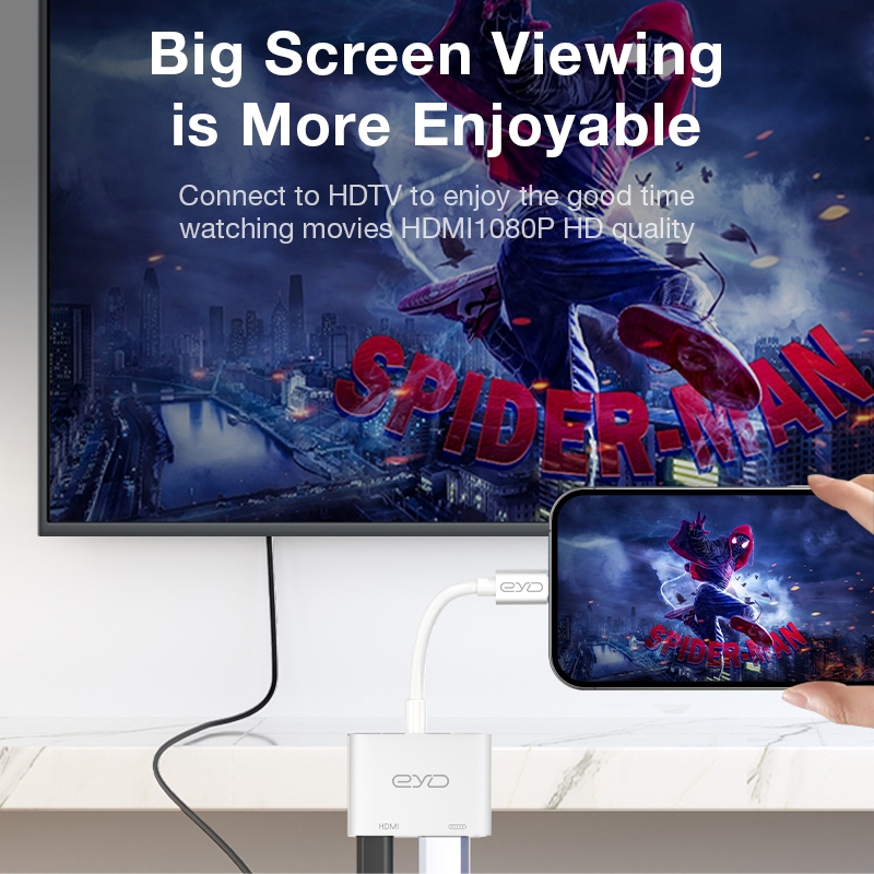 EYD Lightning To HDMI Adapter Kable For IPhone iPad 4K HD Digital TV Monitor HD02S