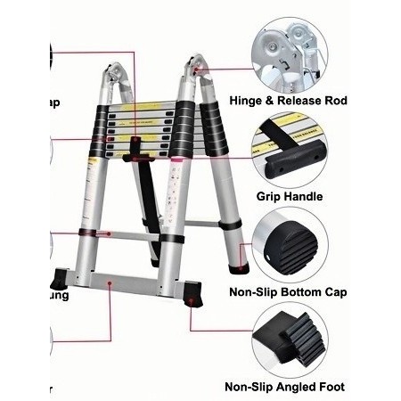 Tangga Lipat Aluminium Tangga Teleskopik Portabel Rumah Tangga Multifungsi Dengan Teknik