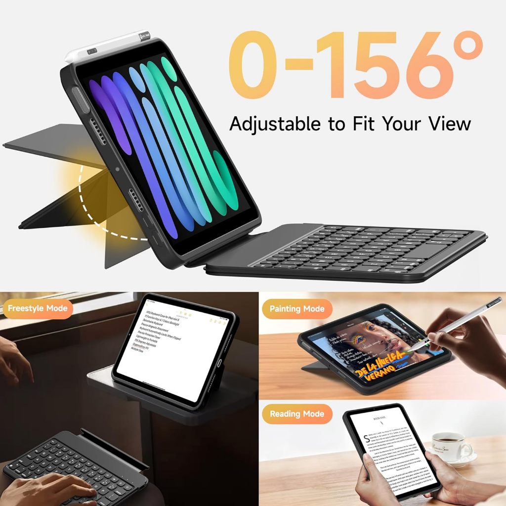 Hou Mate-8 Keyboard Case Folio untuk iPad Mini 6th gen / 7th gen (A17 Pro)