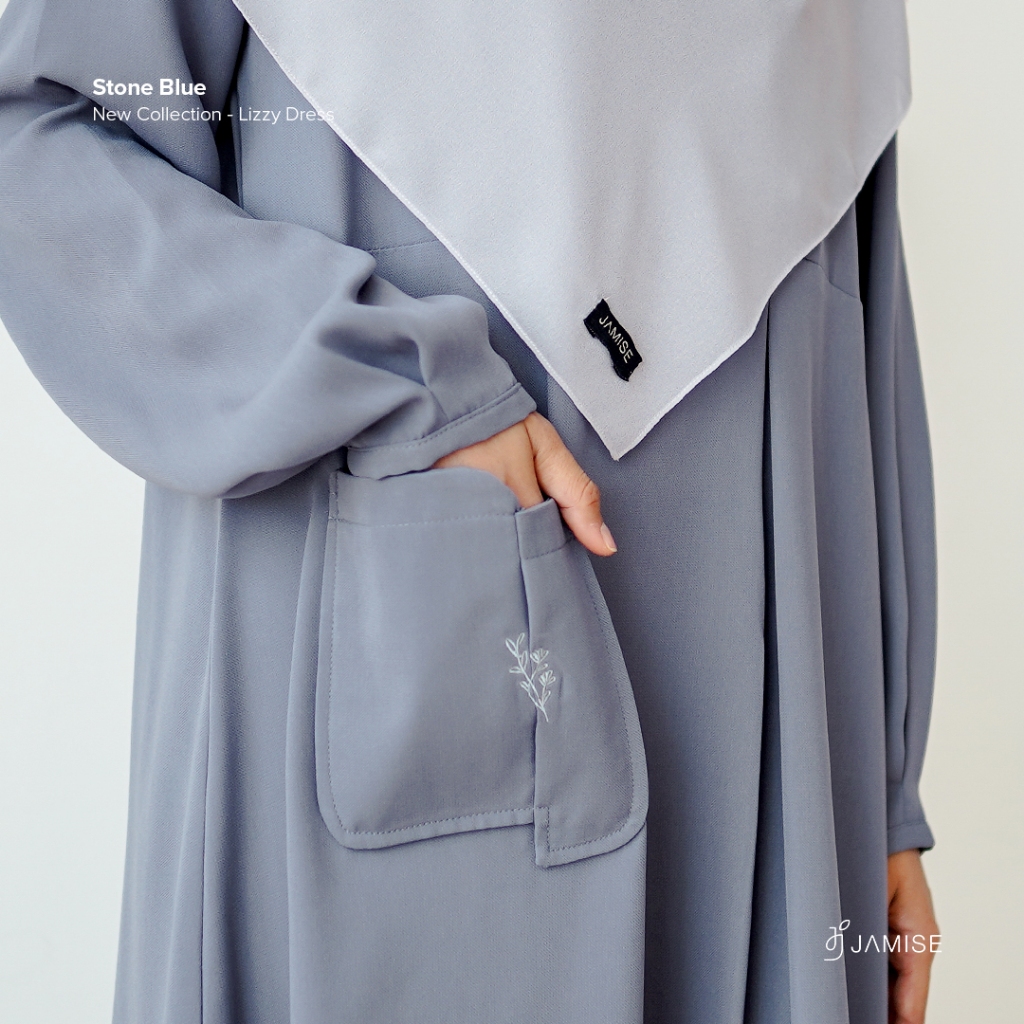 Jamise | Lizzy Dress | Gamis Lebaran Detail Bordir Bunga Saku