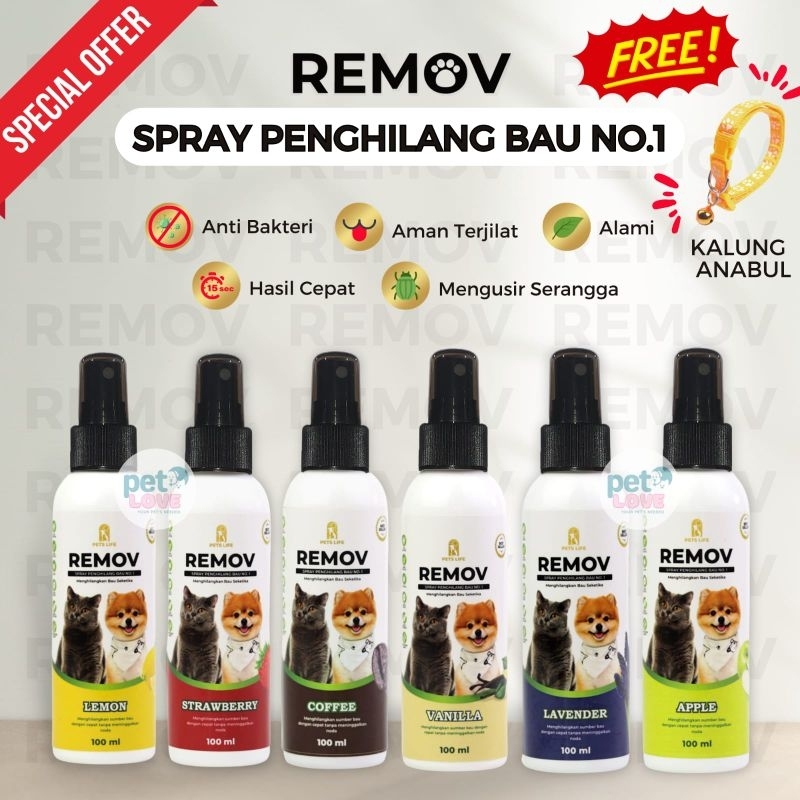 REMOV SPRAY PENGHILANG BAU KOTORAN KUCING ANJING 100ml Ampuh Tahan Lama Pet Odor Remover