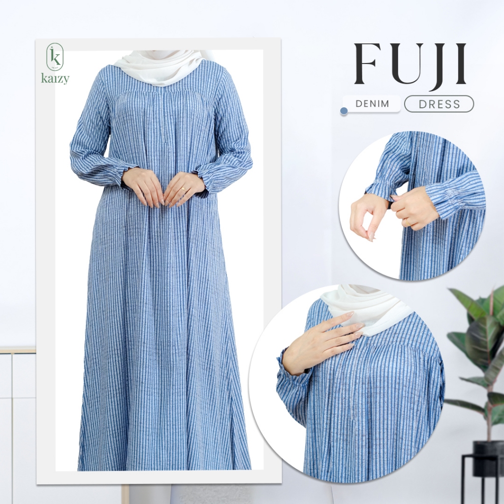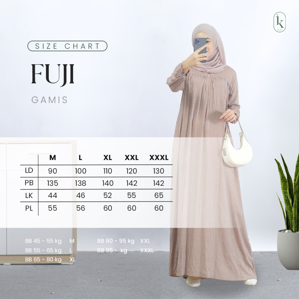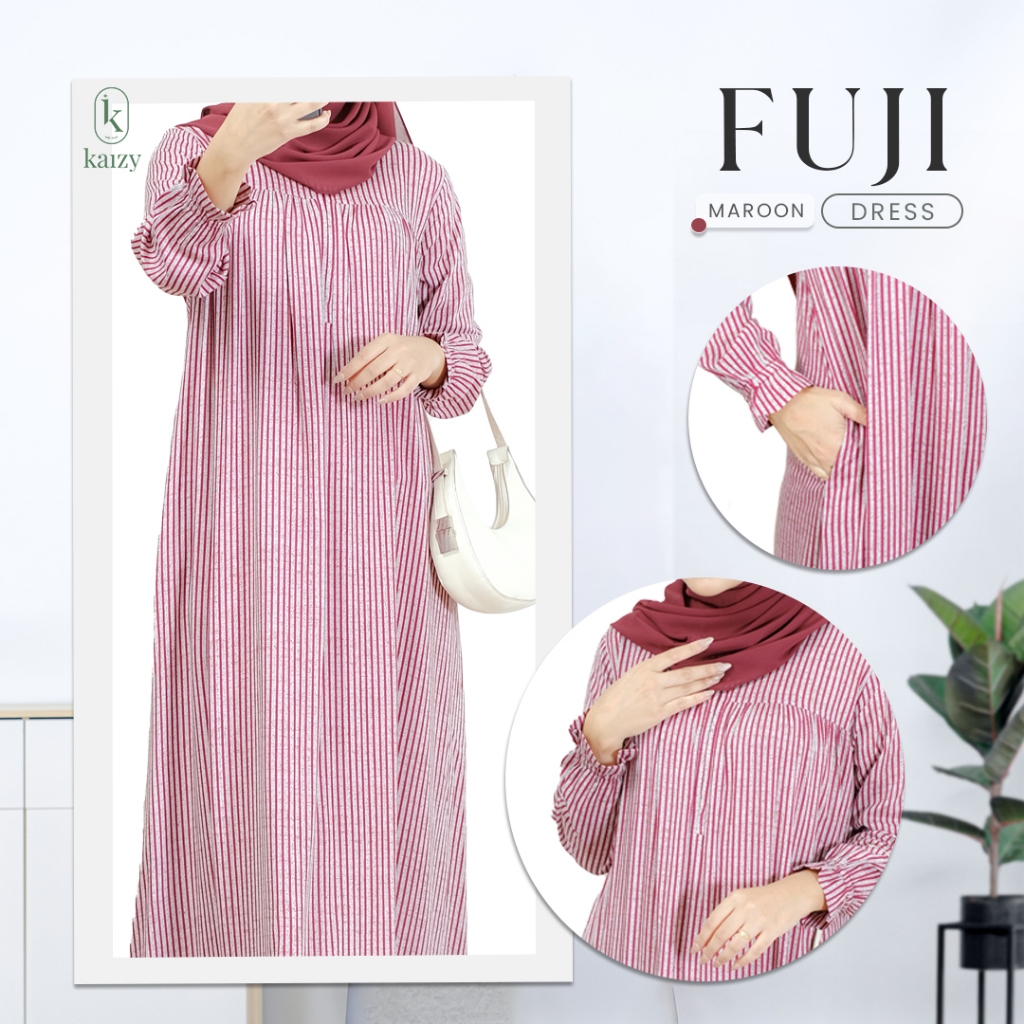 FUJI GAMIS - Gamis Motif Salur Bahan Rayon Berbagai Ukuran Kualitas Premium