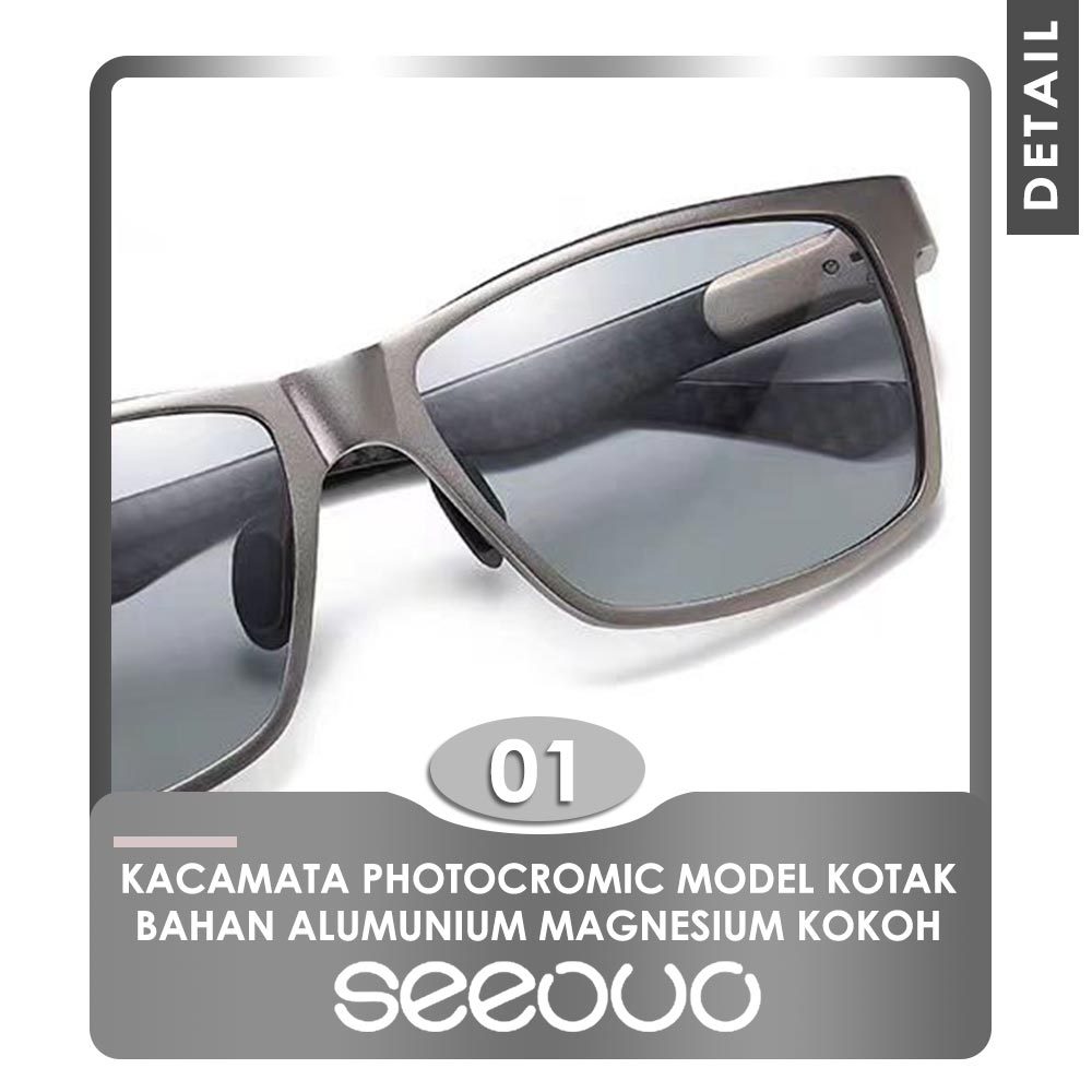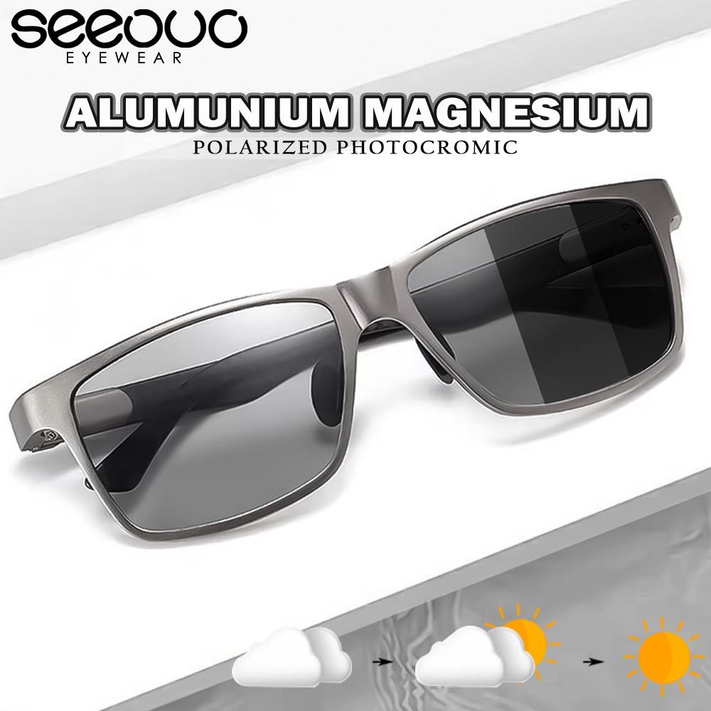 Seeouo Sunglasses Polarized Photocromic Fashion Glasses Kotak Stylish Unisex Pria dan Wanita Alumunium Magnesium 80081