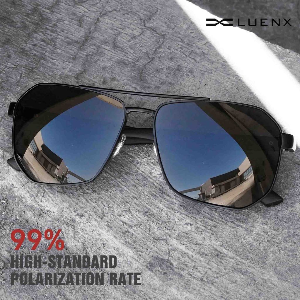 Luenx Kacamata Hitam Aviator Sunglasses Unisex Square Polarized Polygon Lens - UV 400 Protection with Accessories 61MM Driving Outdoor 6408-1