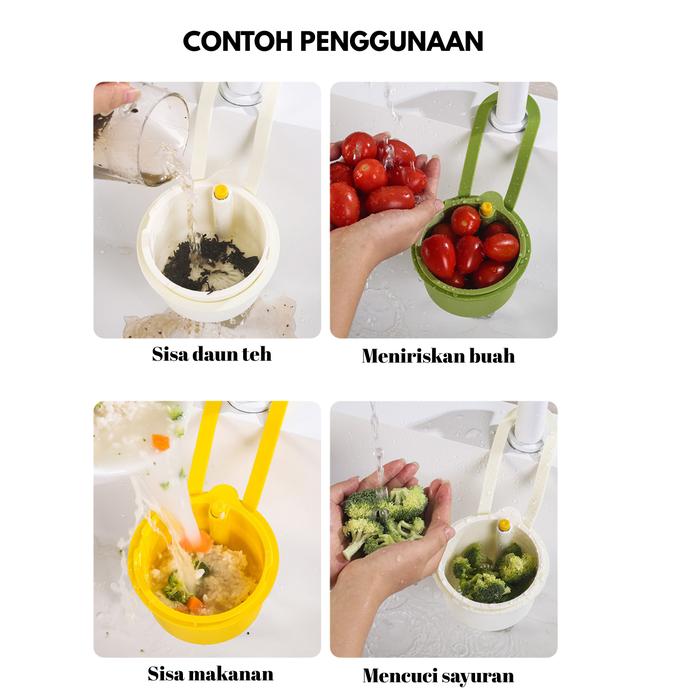 Keranjang Saringan Wastafel Dapur Penyaring Sisa Makanan Filter Sink Anti Sumbat Tombol Otomatis - Putih