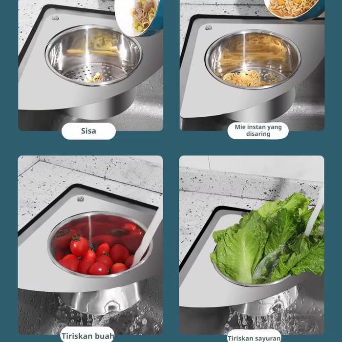 HAPRY87SARINGAN SUDUT STEEL tirisan mie steinless tirisan wastafel wadah saringan buah mie sampah dapur 304 steel S042