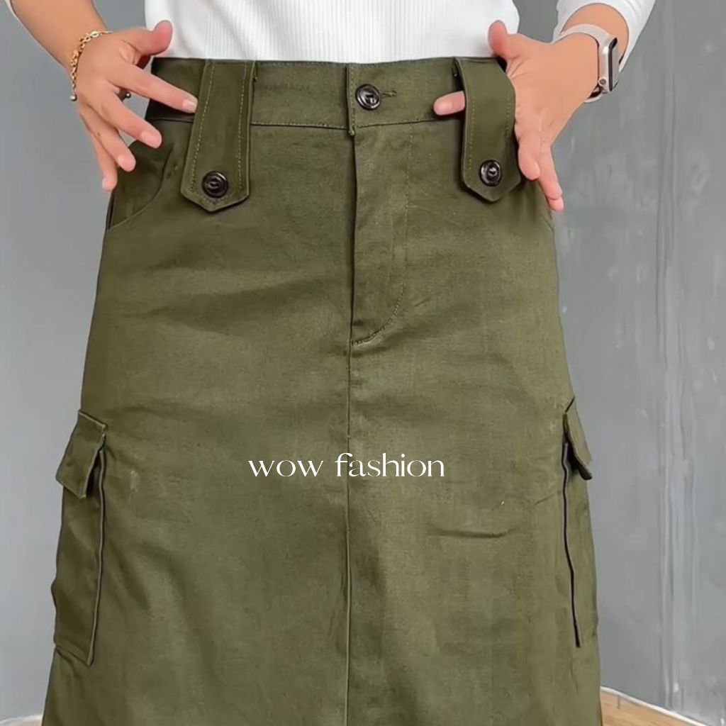 WOW - Maira Rok Cargo Skirt Korean Style Panjang Katun Twill Premium Wanita