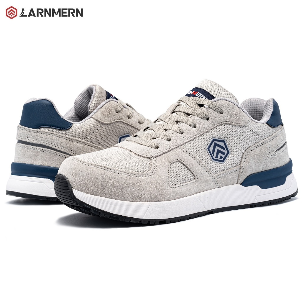LARNMERN Safety Shoes Mens Sneakers Steel Toe Construction AntiStatic Work Shoes Pria L9096 Grey