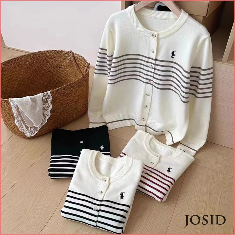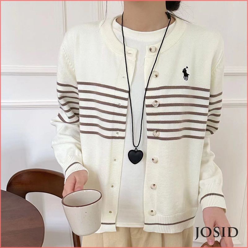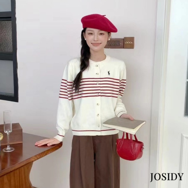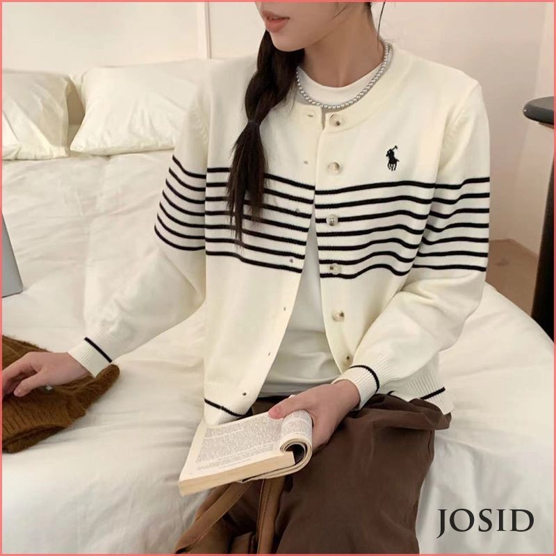 Kardigan rajutan bergaris retro Jaket wol longgar musim semi dan musim gugur untuk wanita JD Murah Gratis Ongkir