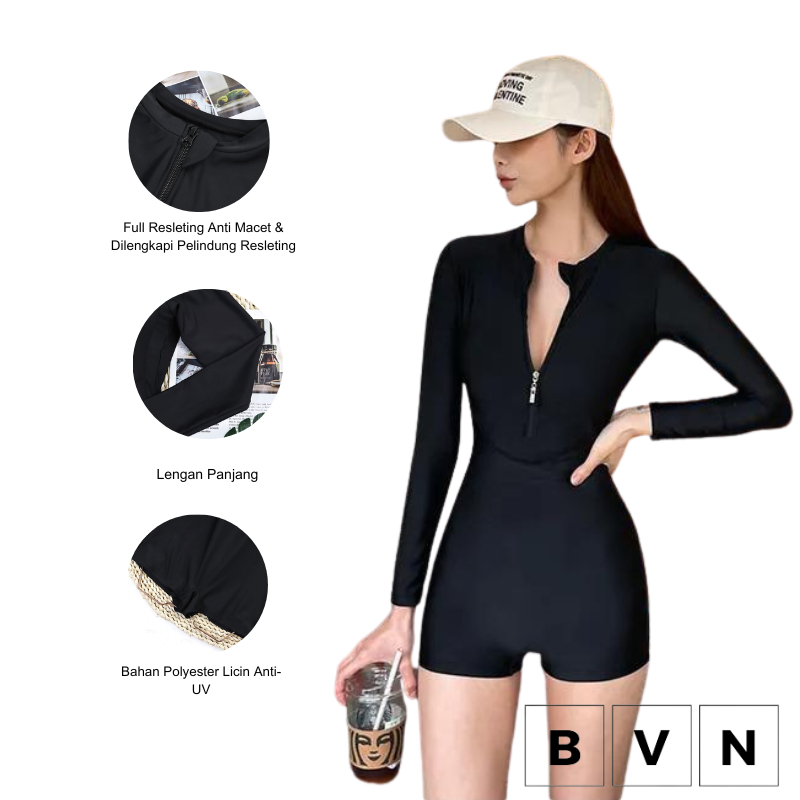 BVN Swimsuit Baju Renang Diving Lengan Panjang Wanita Women One piece Swimsuit High Waisted Swimwear 9047