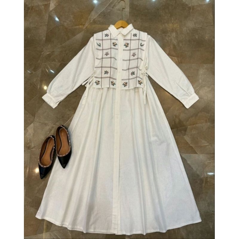 Tamara Gamis Remaja Ootd Korean Style Polo Linen Premium Mix Bordir Timbul Viral Kekinian DressPesta