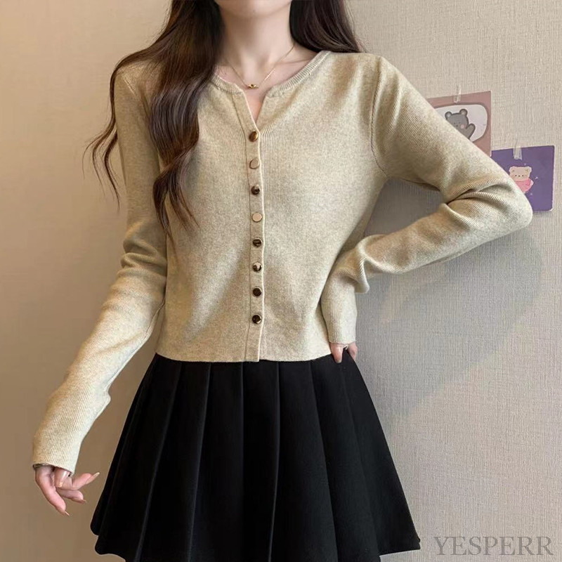 Korean Style Premium Lengan Panjang Basic Cardigan Rajut Gaya Lembut Jaket Warna Solid Chic Wanita YP Murah Gratis Ongki
