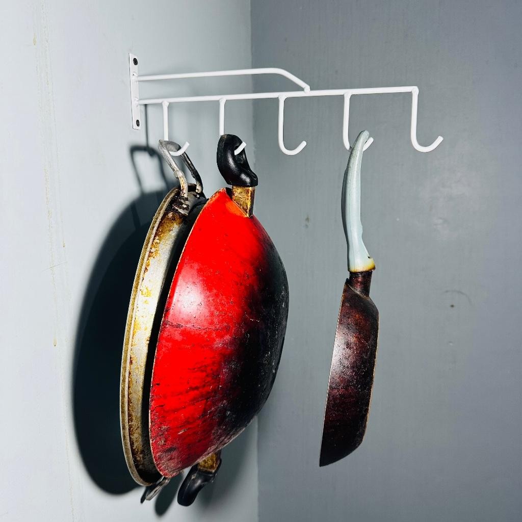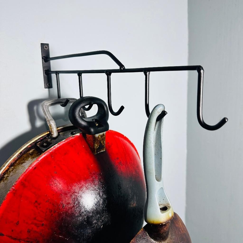 Rak gantungan wajan panci kuali tempel tembok besi kuat anti karat Dapur Plastik Hitam Kitchenware