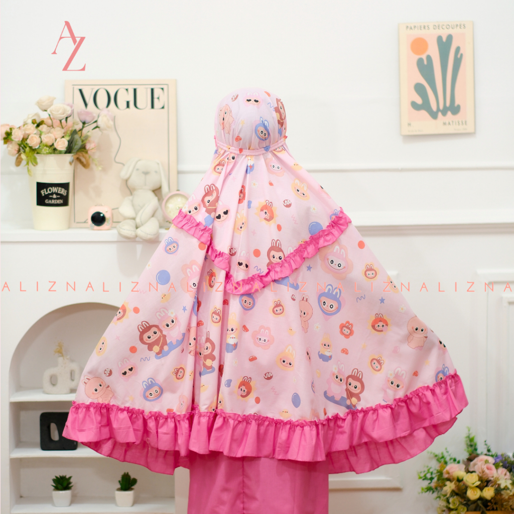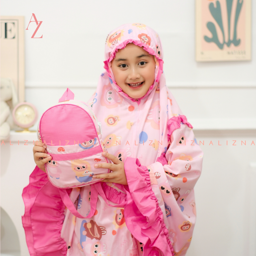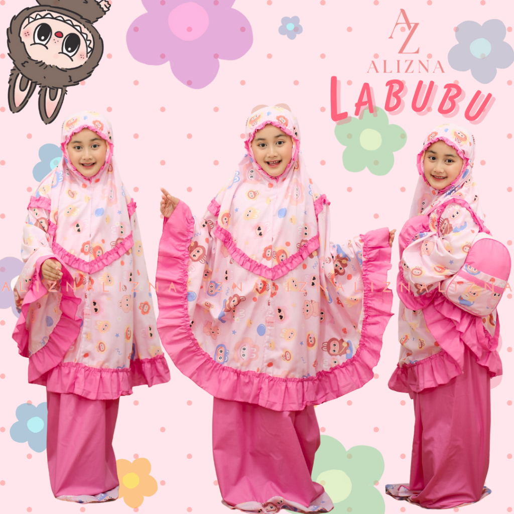 Alizna - Labubu - Mukena Anak Karakter 3In1 Free Tas Ransel Dan Sajadah Muka