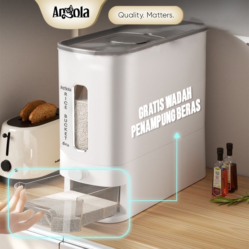 ANGOLA Dispenser Beras Otomatis 6-12KG E13-E14 Tempat Penyimpanan Beras Food Grade