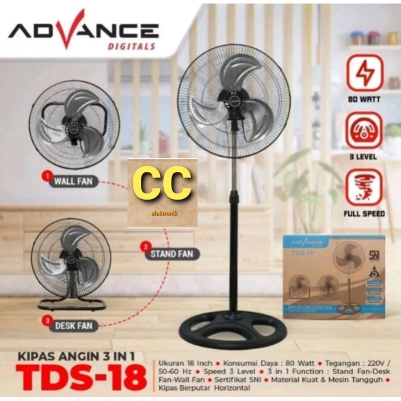 KIPAS ANGIN ADVANCE TDS-18 3in1 multifungsi TDS 18 tds18 / KIPAS ANGIN ADVANCE TDS18 18INC GARANSI RESMI