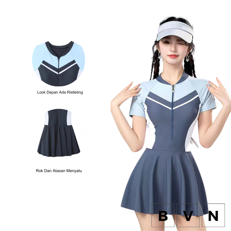 BVN Swimsuit Bikini Premium Set Baju Renang Celana Rok Wanita Jumsuit Long Hand Fashion 9102