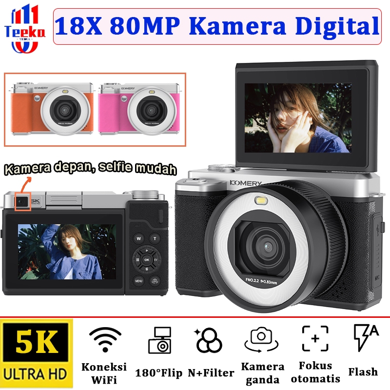 TEEKA X7 80MP 5K Selfie Wifi Kamera Digital Retro Kamera Video 5K Zoom Digital 18x dengan Koneksi WIFI Dukungan Selfie H