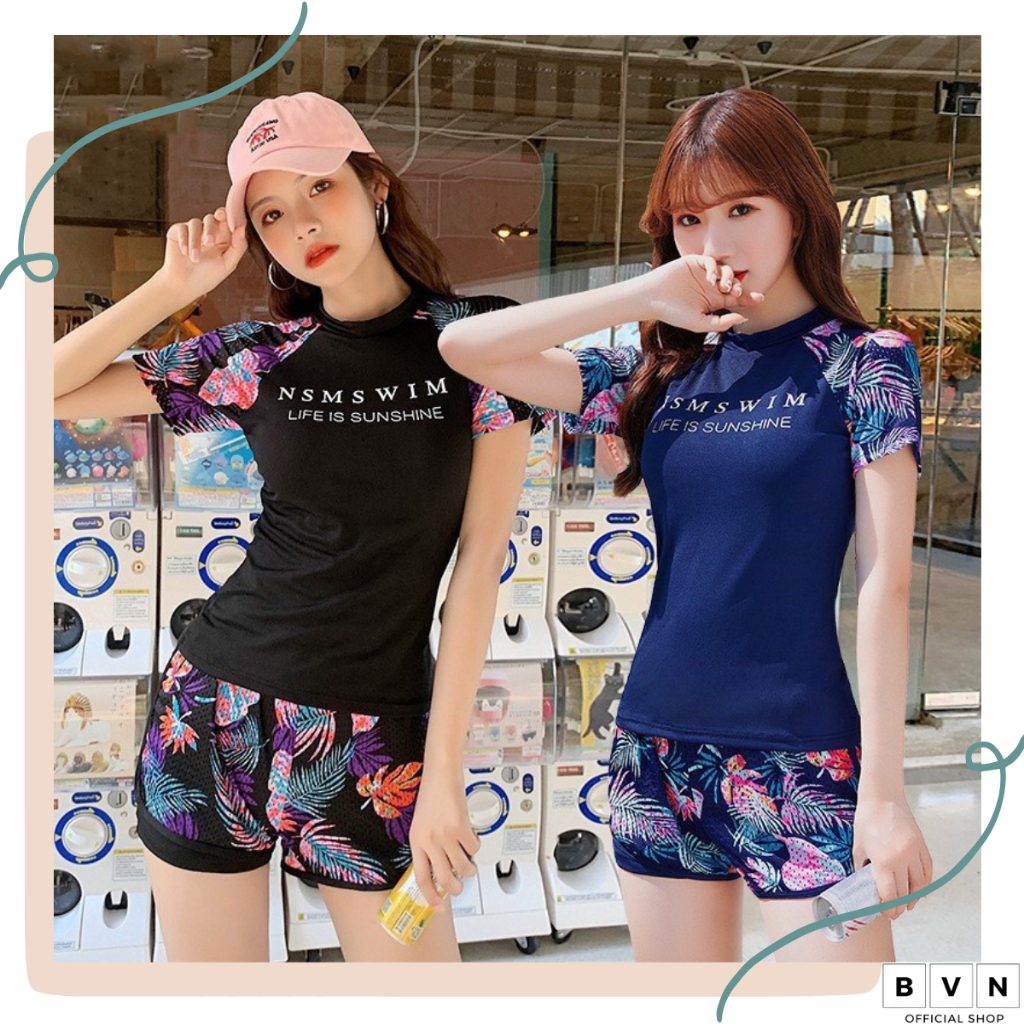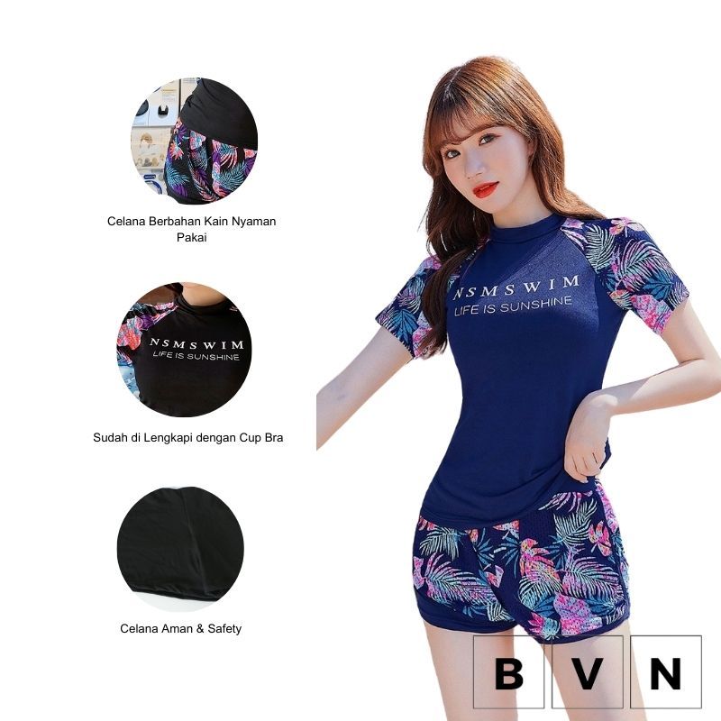 BVN Swimsuit Baju Renang Sport Wanita Two piece lengan pendek 8030