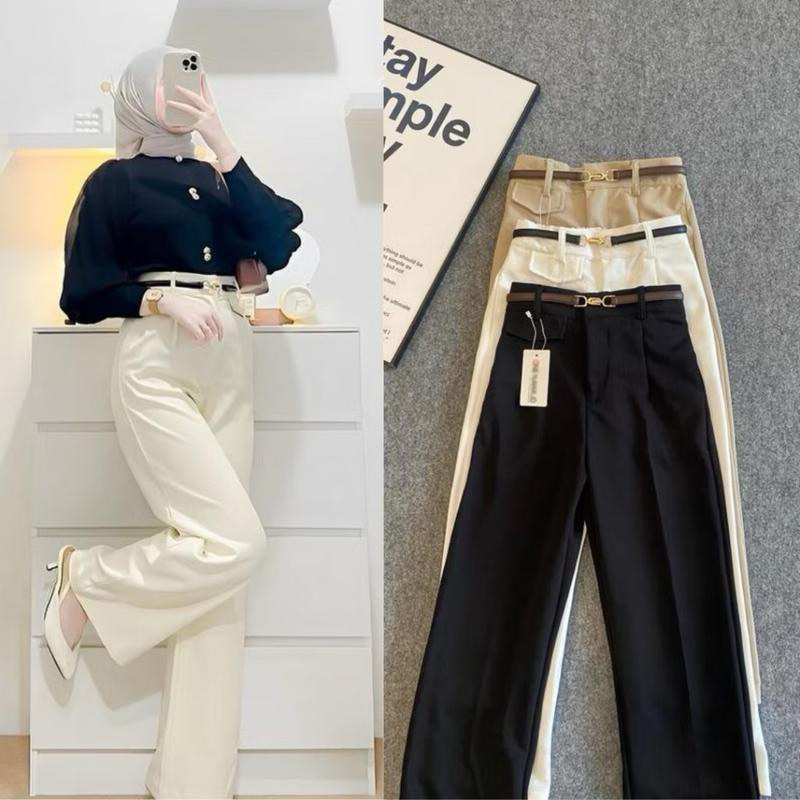 Oro Pants - Celana Panjang Wanita Loose Pants Basic Knit Premium - Loose Pants Trouser Wanita Celana Anti Kusut - Celana Kulot Wanita Casual High Waist Cewek Formal Bawahan Kantor