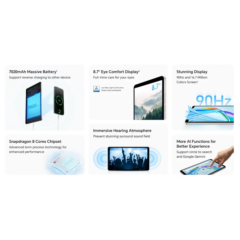 Honor Pad X7 4GB+128GB | 8.7 inches | Bterai 7020 mAh | Snapdragon 680 | Garansi Resmi Indonesia