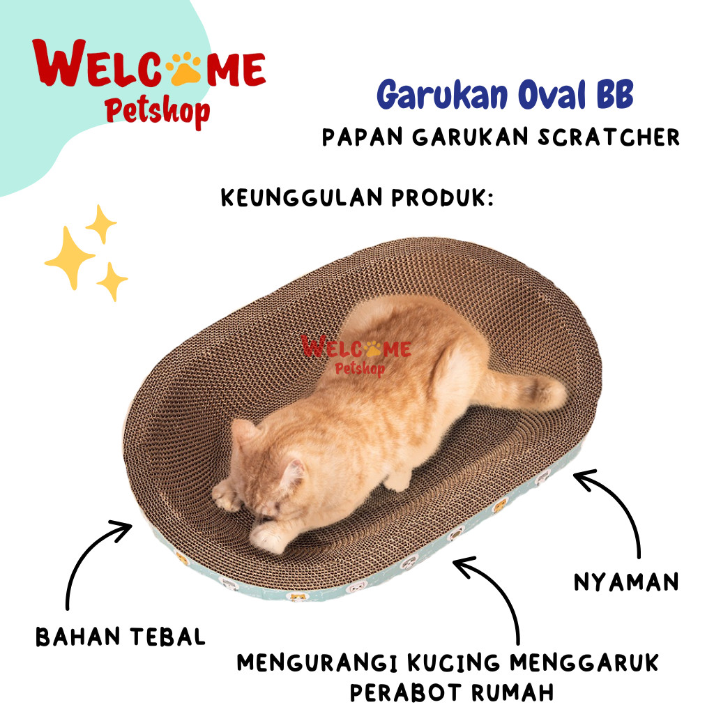 Garukan Oval BB Multifungsi Cat Scratcher Papan Kucing Garukan Scratch Kuku Tebal Tempat Tidur Main Duduk Asah Kuku