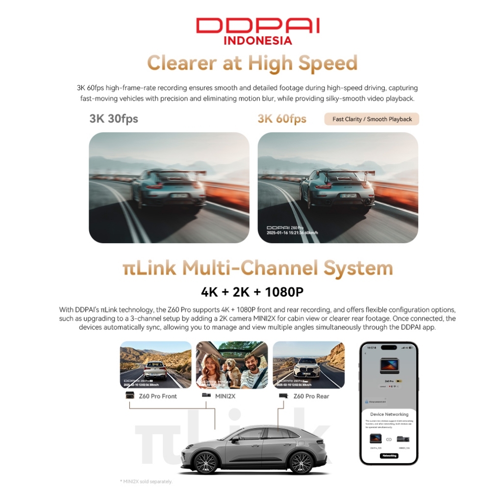 DDPAI Z60Pro 4K Dashcam Three-Channel Dual Sony STARVIS 2 Built-in GPS & ADAS Super Capacitor Night Vision