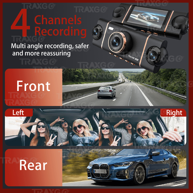 D65 Dash Cam Mobil Empat Kamera - Real 1080p FHD + Pemantauan Parkir 24 Jam + Kontrol Koneksi WiFi Mobile + GSensor + La