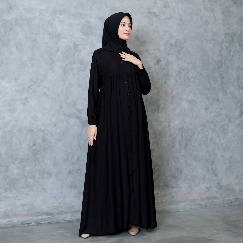 Gamis Full Kancing Rayon Twill Gamis Polos Premium Muslim Wanita Gamis Lengan Kancing