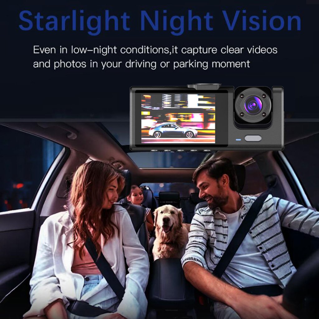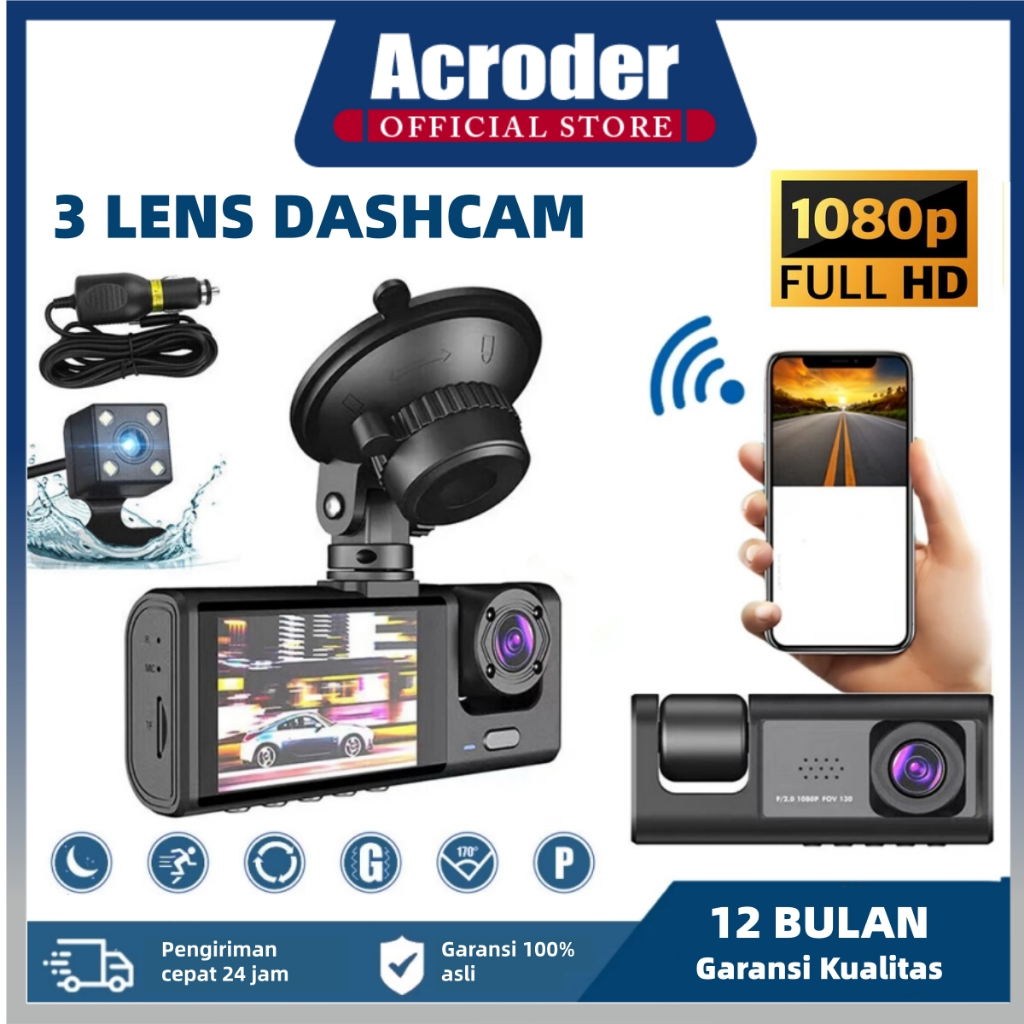 Acroder Dashcam Mobil 3 Cameras HD 1080p 170° Night Vision G-Sensor 24 Hours Parking