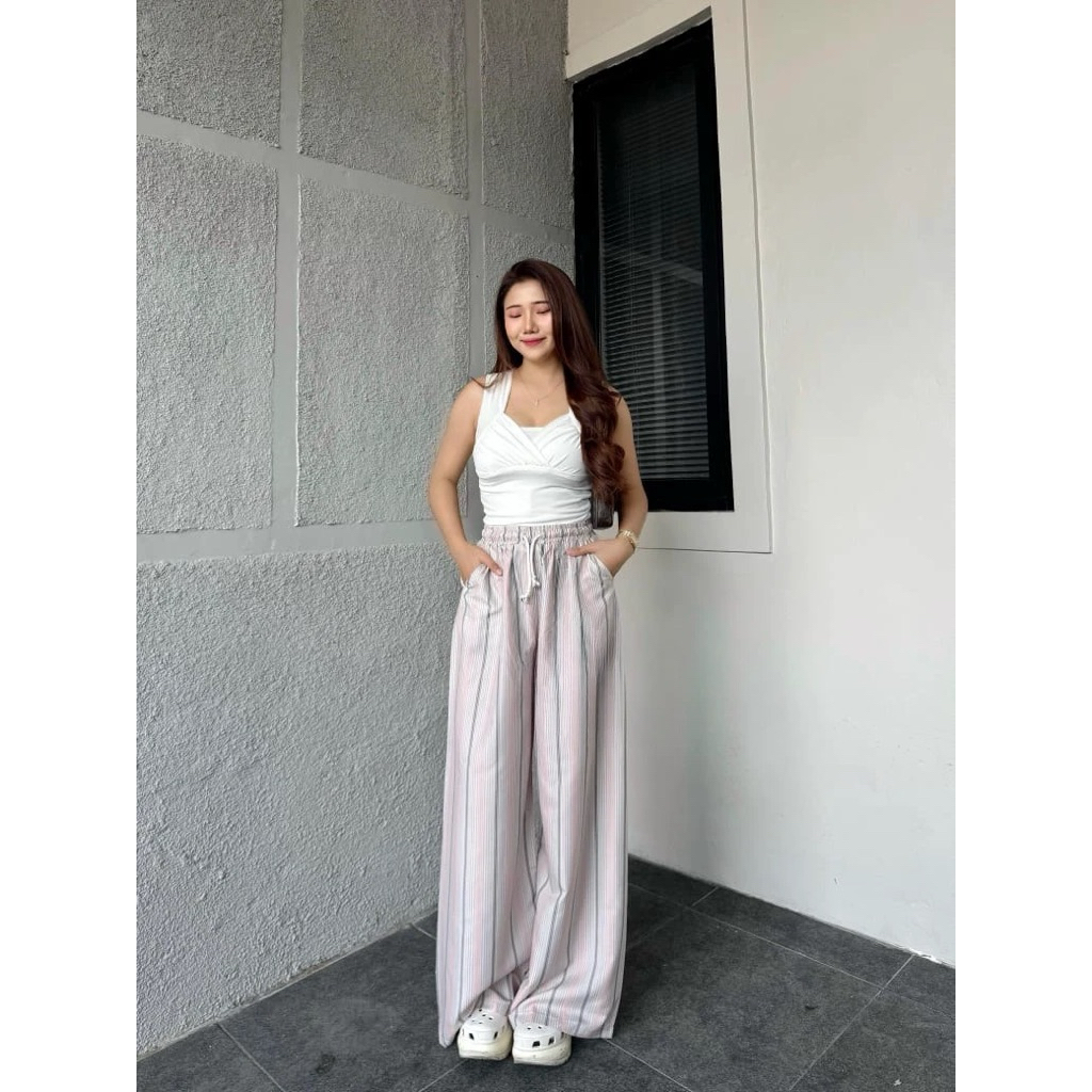 Clayy Everyday Pants Strips Pants Bangkok Celana Panjang Wanita Baggy Kantor Kuliah Motif Garis Kulot Pinstripe Celana F