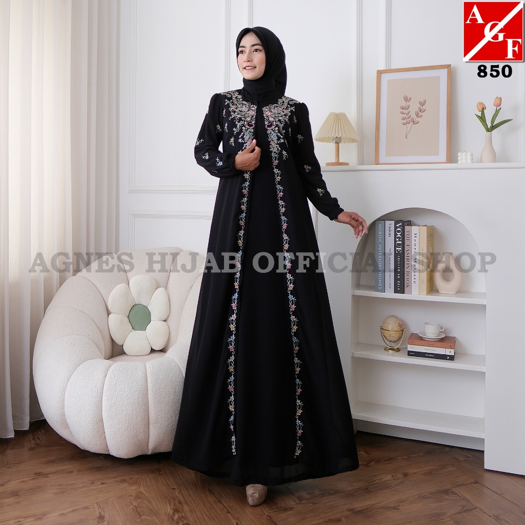 Agnes Hijab - Aiza Dress Gamis Putih Lebaran 2026 Terbaru Bordir Bunga Baju Muslim Wanita Abaya Hitam Gaun Pesta Kondangan Mewah Simple Elegan Haji Umroh 850
