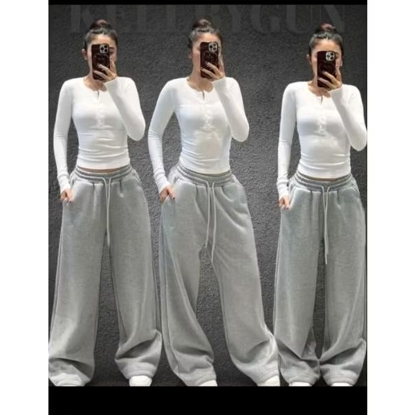 Celana loose Baggy loose Sweatpants Jogger Highwaist Korean Style Training Pria dan Wanita Casual sport Murah Gratis Ong