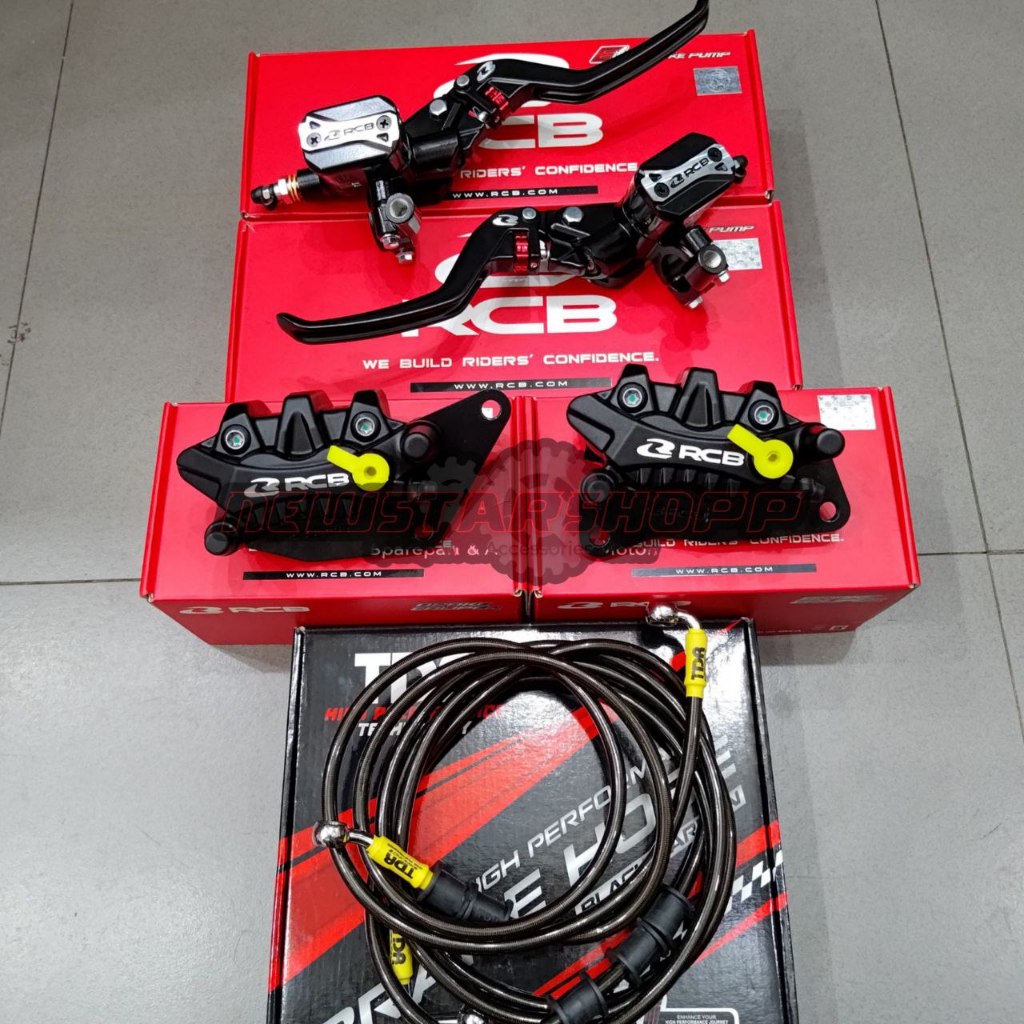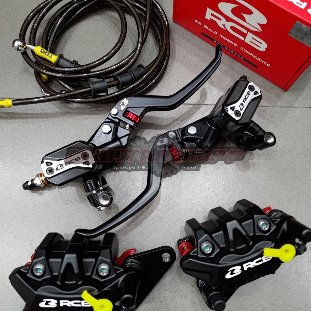 Paketan Master Rem RCB E3 Plus 14mm Set Kanan Kiri + Kaliper RCB S26 Series 2 Piston + Selang Rem TDR Package Black Carb