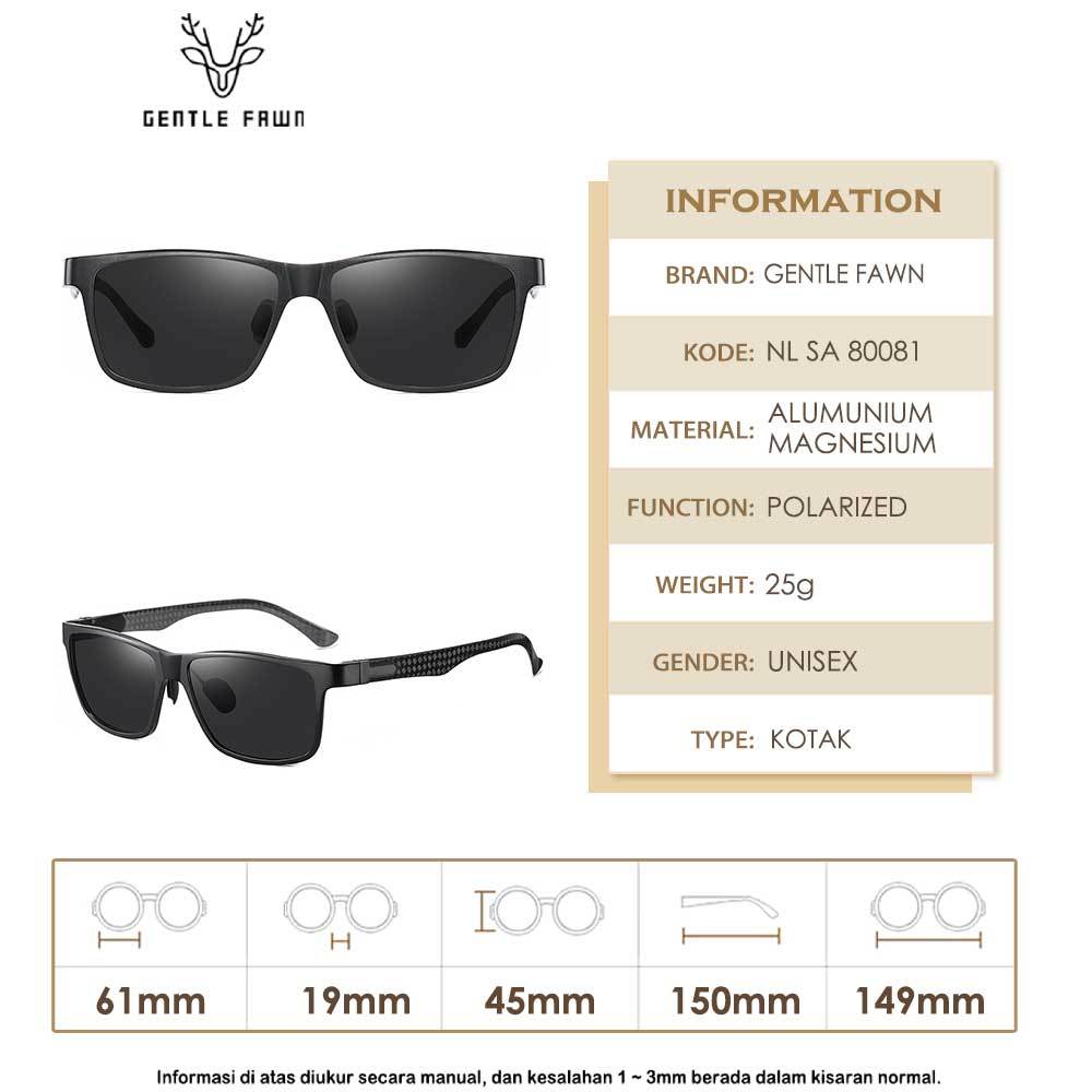 Gentle Fawn Kacamata Sunglasses Polarized Anti Silau Model Kotak Bahan Alumunium Magnesium Kokoh Fashion Pria Dan Wanita Terbaru 80081