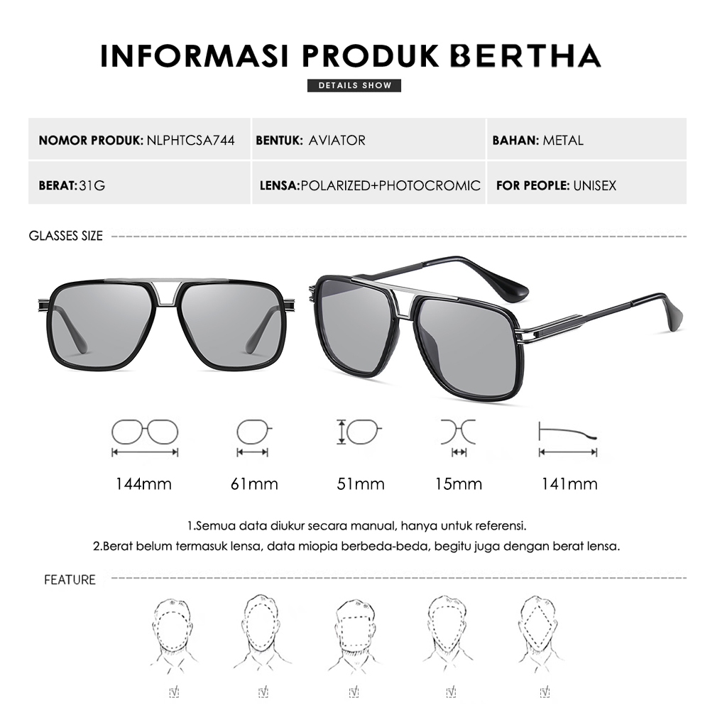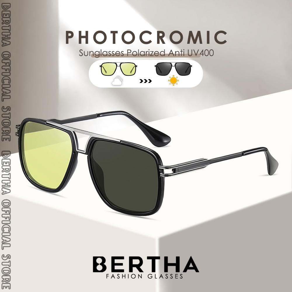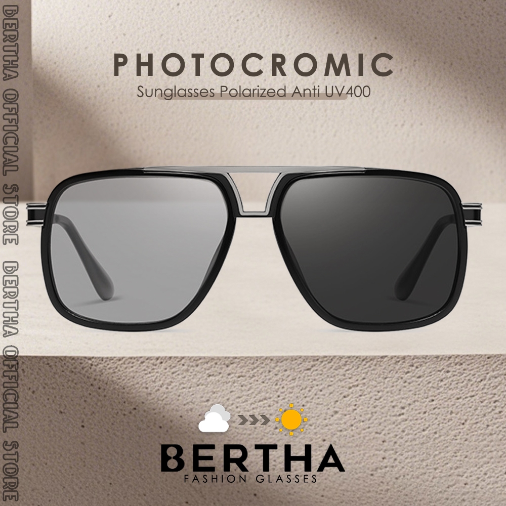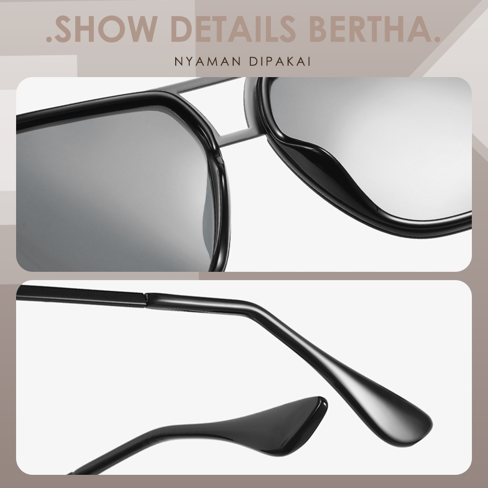 Bertha Kacamata Sunglasses Polarized Photocromic Anti Silau Bentuk Aviator Bahan Metal Fashion Pria Wanita 744