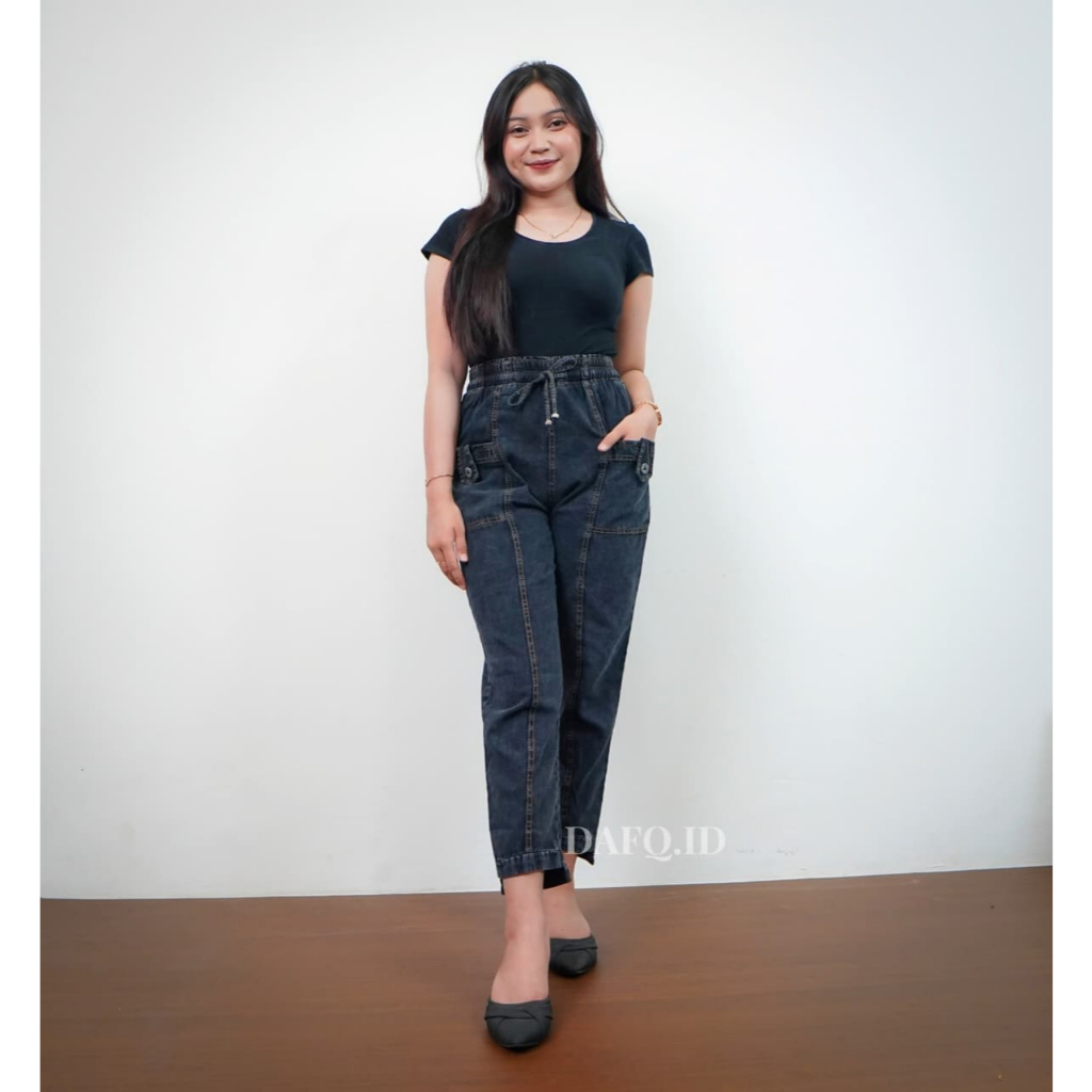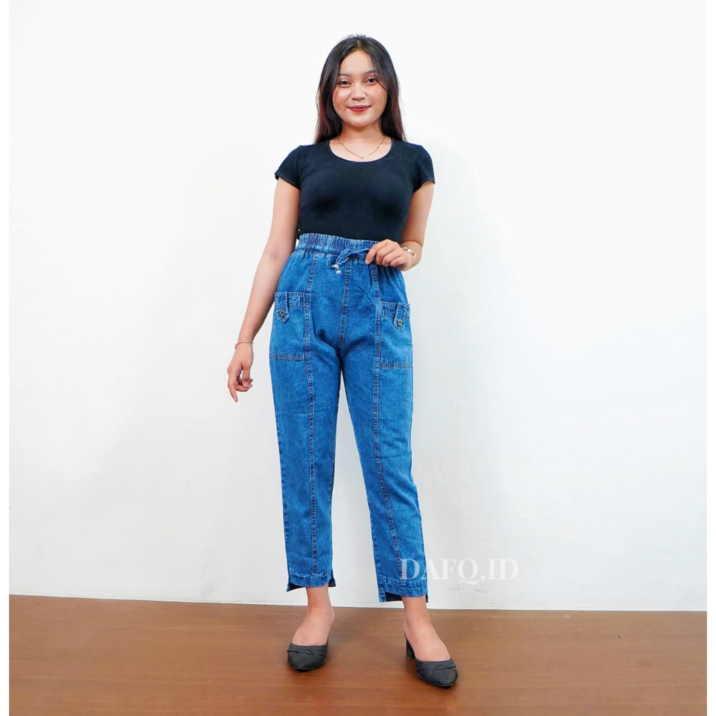 Celana Baggy Jeans Wanita Kekinian Saku Depan Warna Snow Standar Jumbo Murah Gratis Ongkir