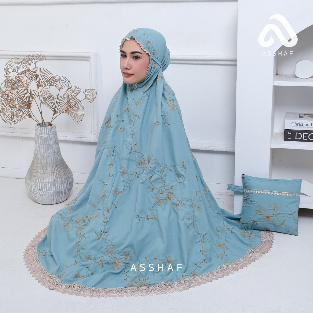 Asshaf - Mukena Dewasa Katun Bordir Bunga Amarilis Renda Cantik