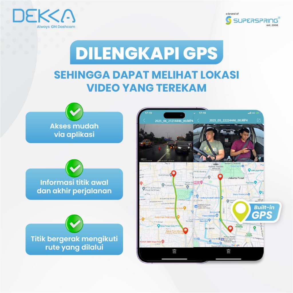 DEKKA Dashcam Mobil 4K GPS Dual dan Triple Kamera WiFi Night Vision Always On Gratis Pemasangan