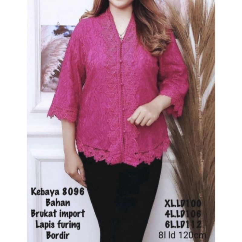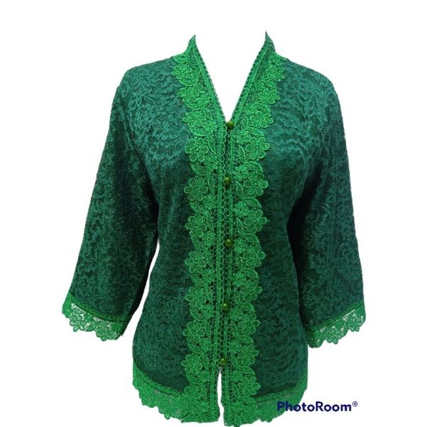 Atasan Kebaya Brokat Lapis Furing Kebaya Kartini Bahan Brokat Premium-Brokat Elghana Hitam Putih 8096 Lurus