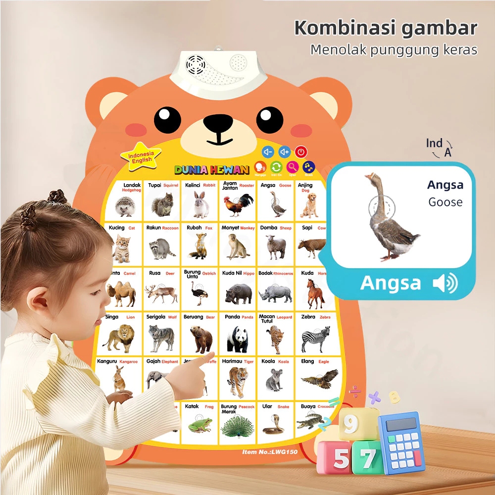 Poster Edukasi Anak Bersuara Bahasa Indonesia Inggris Belajar Bermain Paud Dinding Smartbook Sound