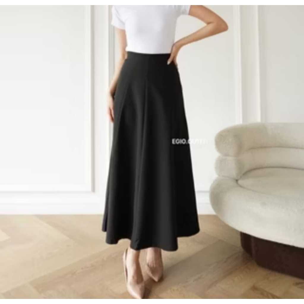 Rok Panjang Wanita High Waist A-Line Korea Bahan Scuba Premium Strecth