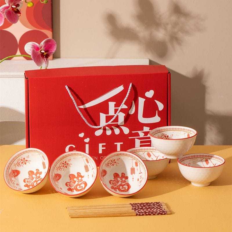 Gift Ceramic Bowl Set Chinese New Year / Hampers & Souvenir Mangkok Set Keramik Imlek