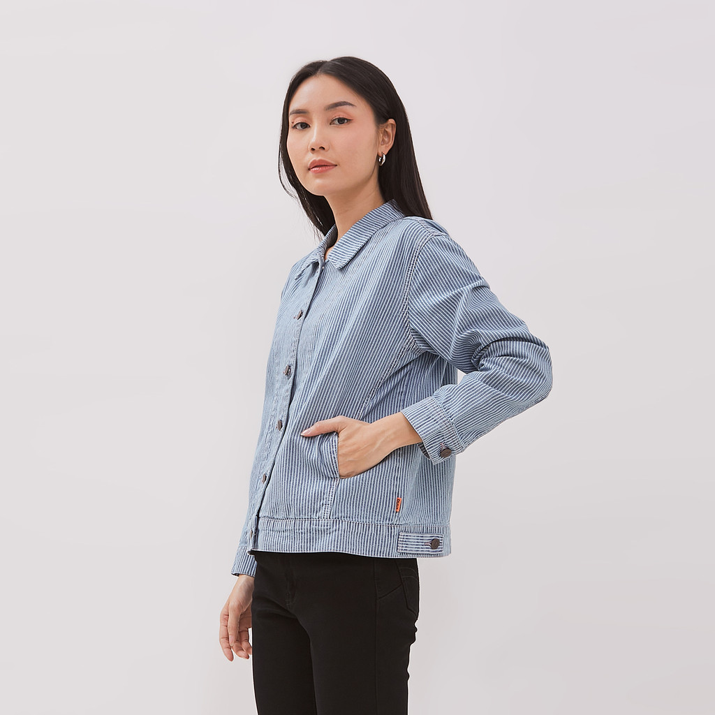 DUST Jaket Boxy Denim Amika Garis Biru (D.61127) Murah Gratis Ongkir