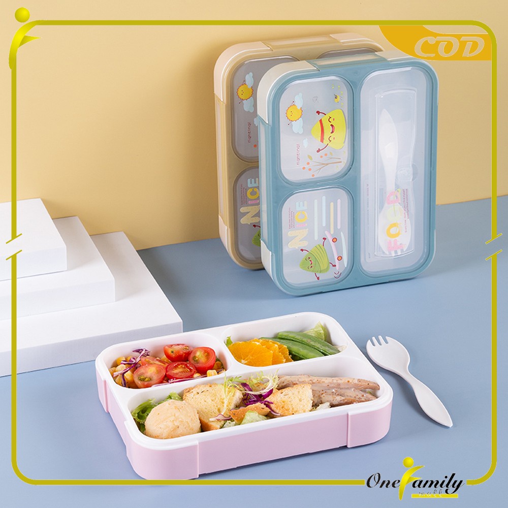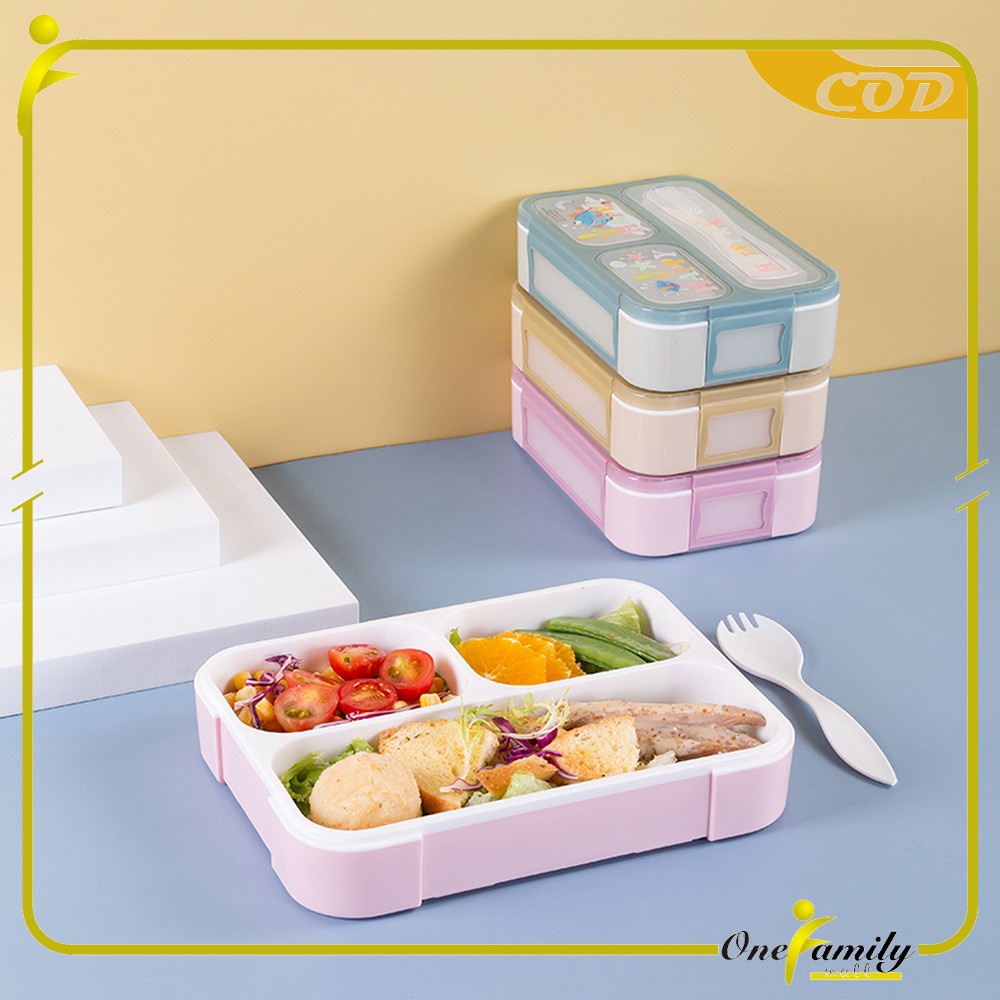 ONE-C448 C449 Lunch Box Set Anak 3 Sekat BPA FREE Karakter Dengan Sendok Tempat Makan Anak Kotak Bekal Anak Motif Lucu M