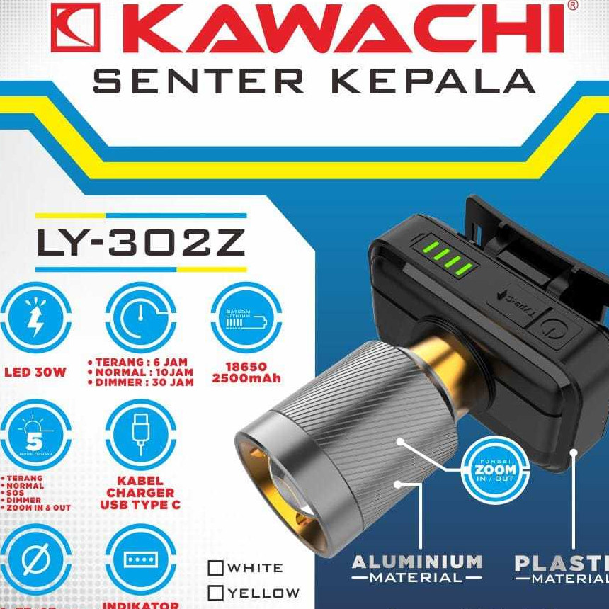 KAWACHI SENTER KEPALA LY-302Z LED LASER DENGAN INDIKATOR BATERAI -JARAK JAUH, TAHAN LAMA, WATERPROOF