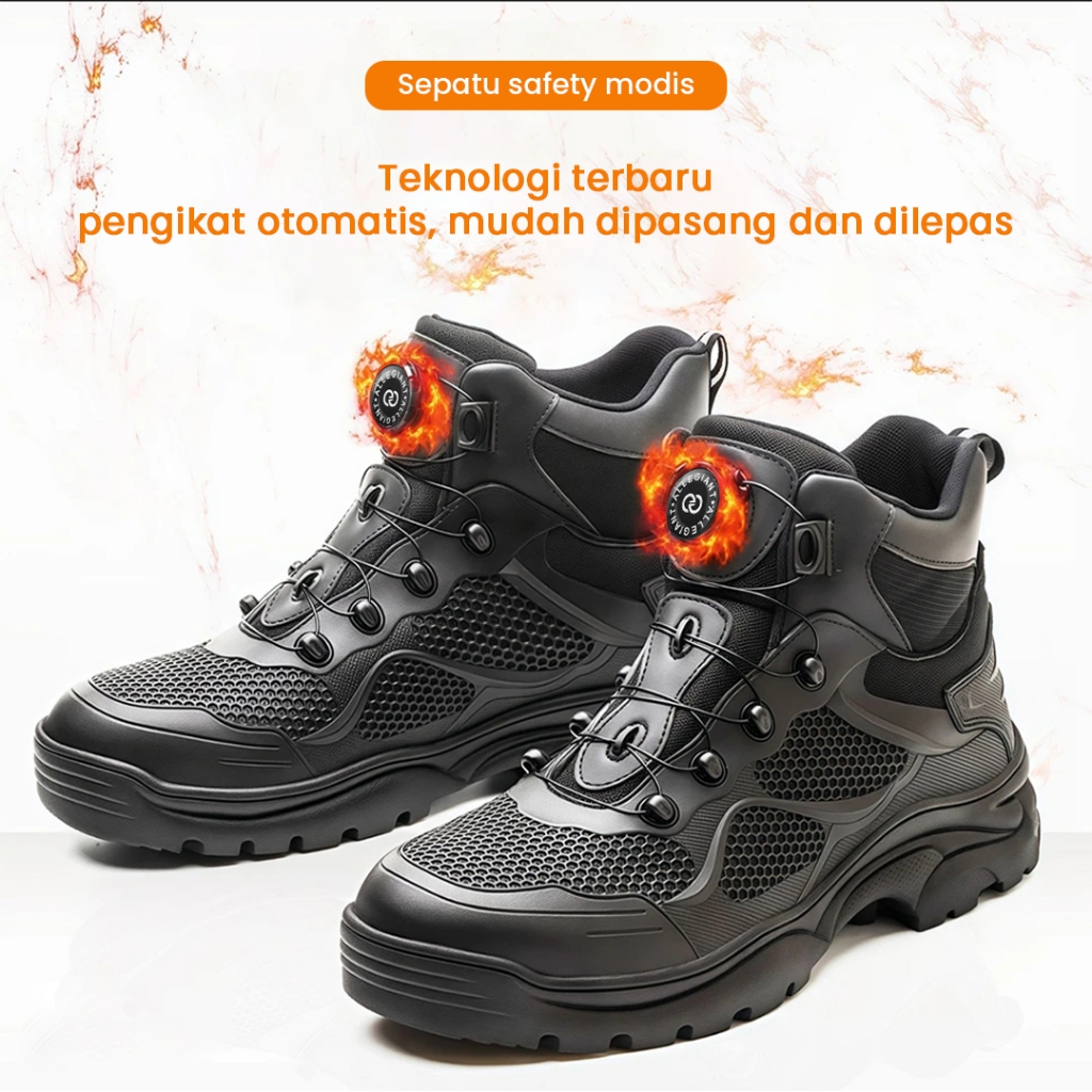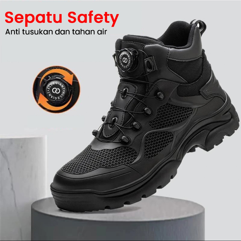 Sepatu Pria Safety Import Ujung Besi Tali Putar ORIGINAL Sneakers Kerja Cowok Cewek Outdor SI20