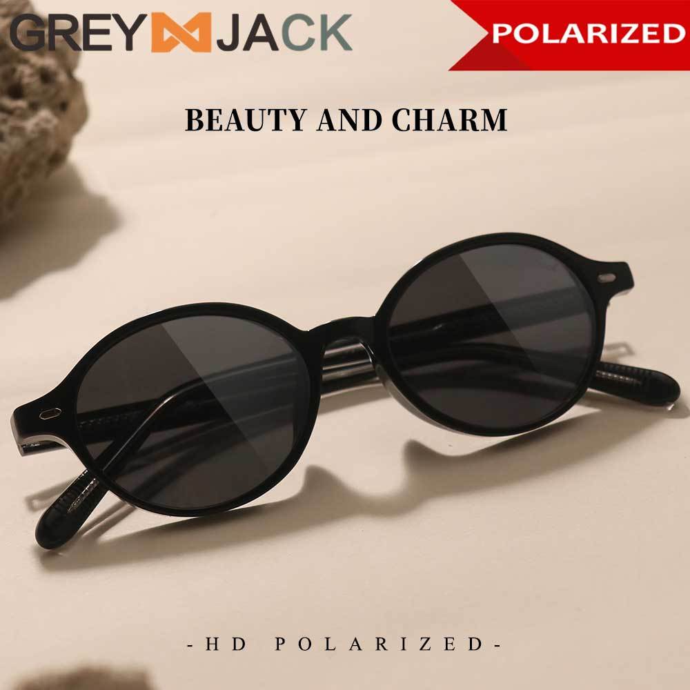 Grey Jack Kacamata Sunglasses Hitam Anti UV 400 Polarized Dewasa Bentuk Bulat Bahan Metal Stylish Fashionable Pria dan Wanita 9141