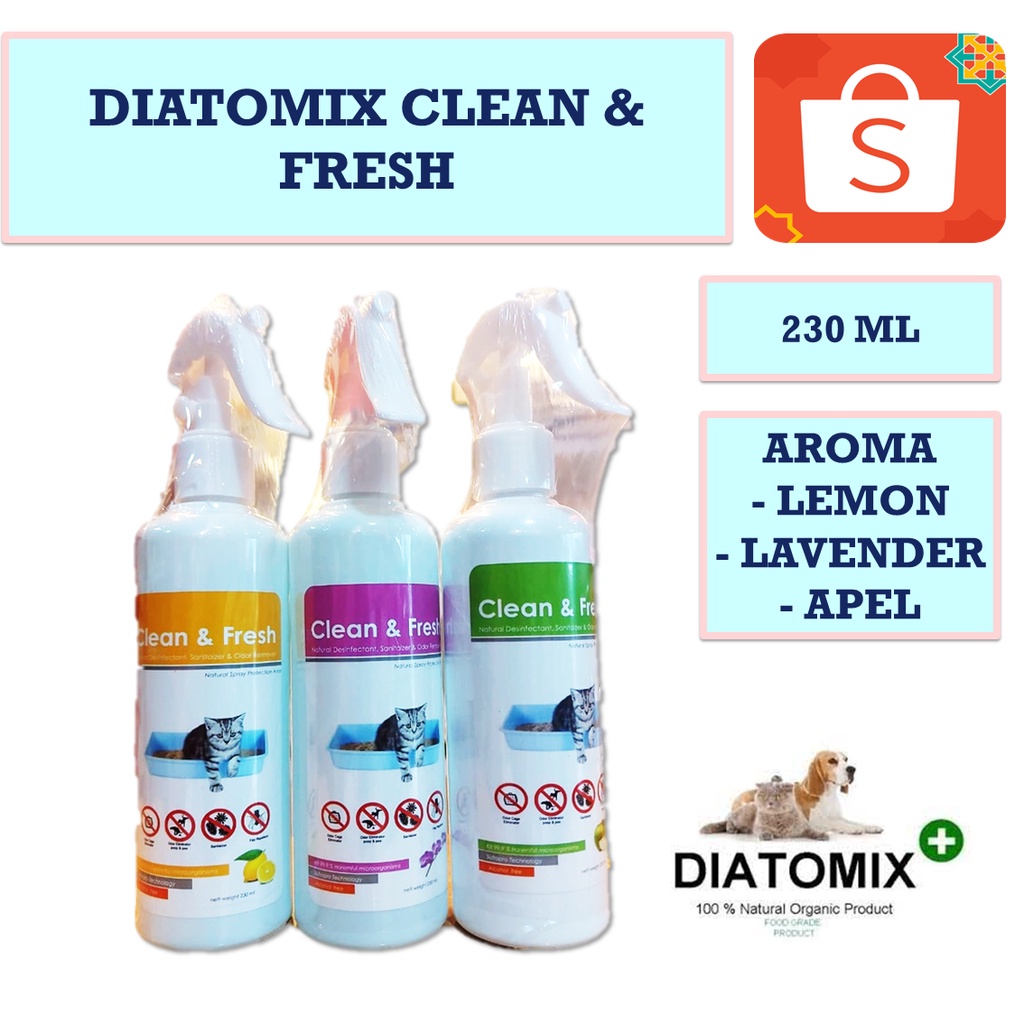 Diatomix Fresh and Clean SPRAY 230 ml semprotan penghilang bau kotoran, kucing, anjing, kelinci dan disenvektan