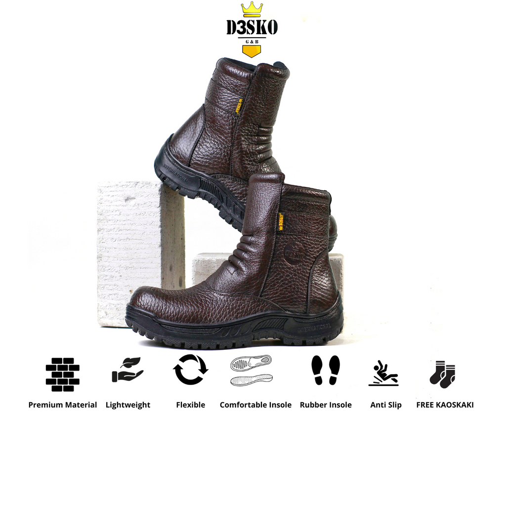 D3SKO G&B - Sepatu Boots Pria D3sko Ares Safety Pria Ujung Besi Warna Coklat